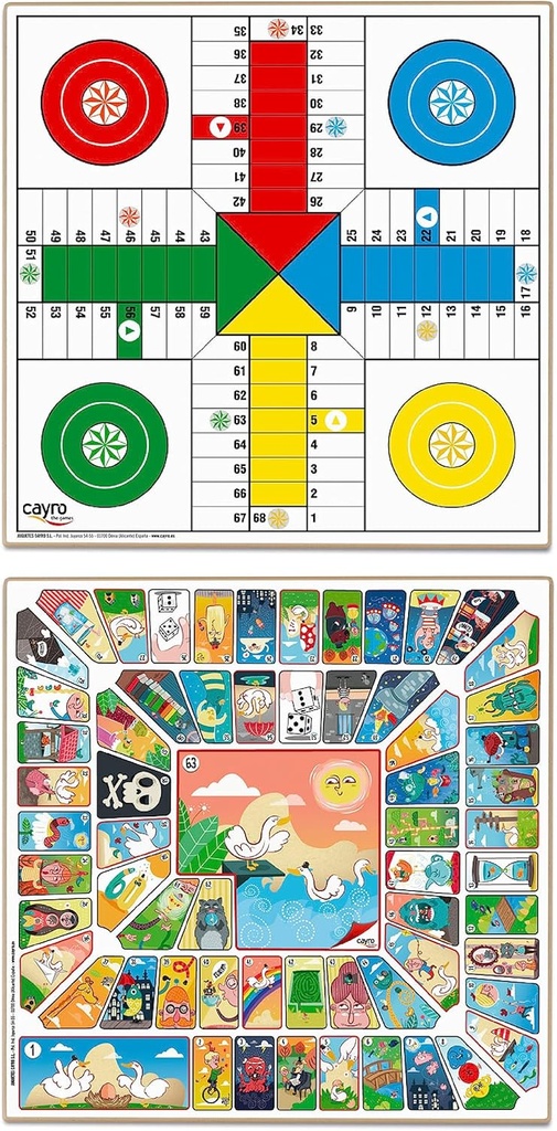Parchís y Oca - + 5 Años - Modelo Piratas - Doble Juego de Mesa para Niños y Adultos - Tablero Reversible y Piezas de Madera - 2 a 4 Jugadores Cayro