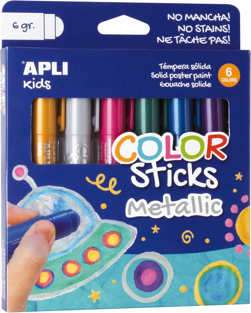 Rotuladores tempera solidad sticks metálicos 6g 6uds +3a Apli