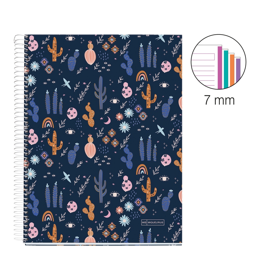 NOTEBOOK 4 - 140 hojas de 4 colores Tamaño A4 Cubiertas: Cartón forrado y plastificado mate. Papel: extra opaco microperforado 70g/m. Horizontal 7 mm Taladros: A4:4