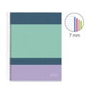 NOTEBOOK 4 - 140 hojas de 4 colores Tamaño A4 Cubiertas: Cartón forrado y plastificado mate. Papel: extra opaco microperforado 70g/m. Horizontal 7 mm Taladros: A4:4